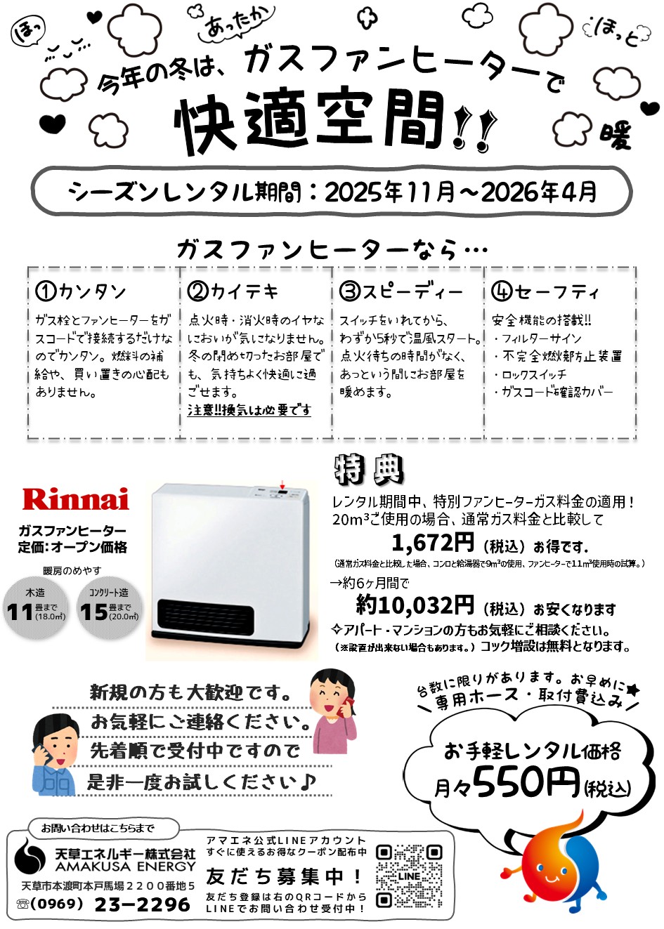 【受付開始】天草エネルギーからレンタルファンヒーターのご案内!