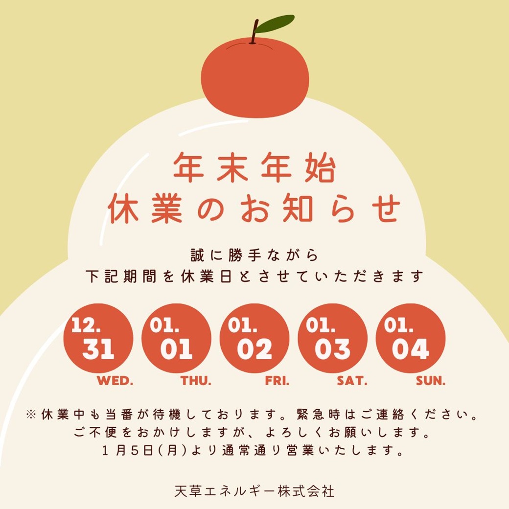 トップページ > ブログ > 天草エネルギーから年末のご挨拶と年末年始休業日のお知らせ