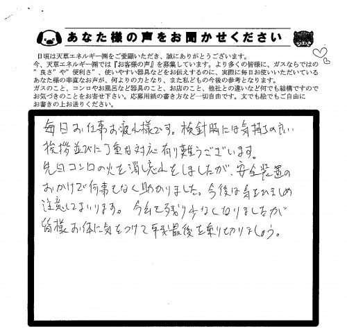 天草エネルギーのサービスをご利用のお客様から頂いた感想のお言葉を、ごく一部ですが掲載させて頂きました。