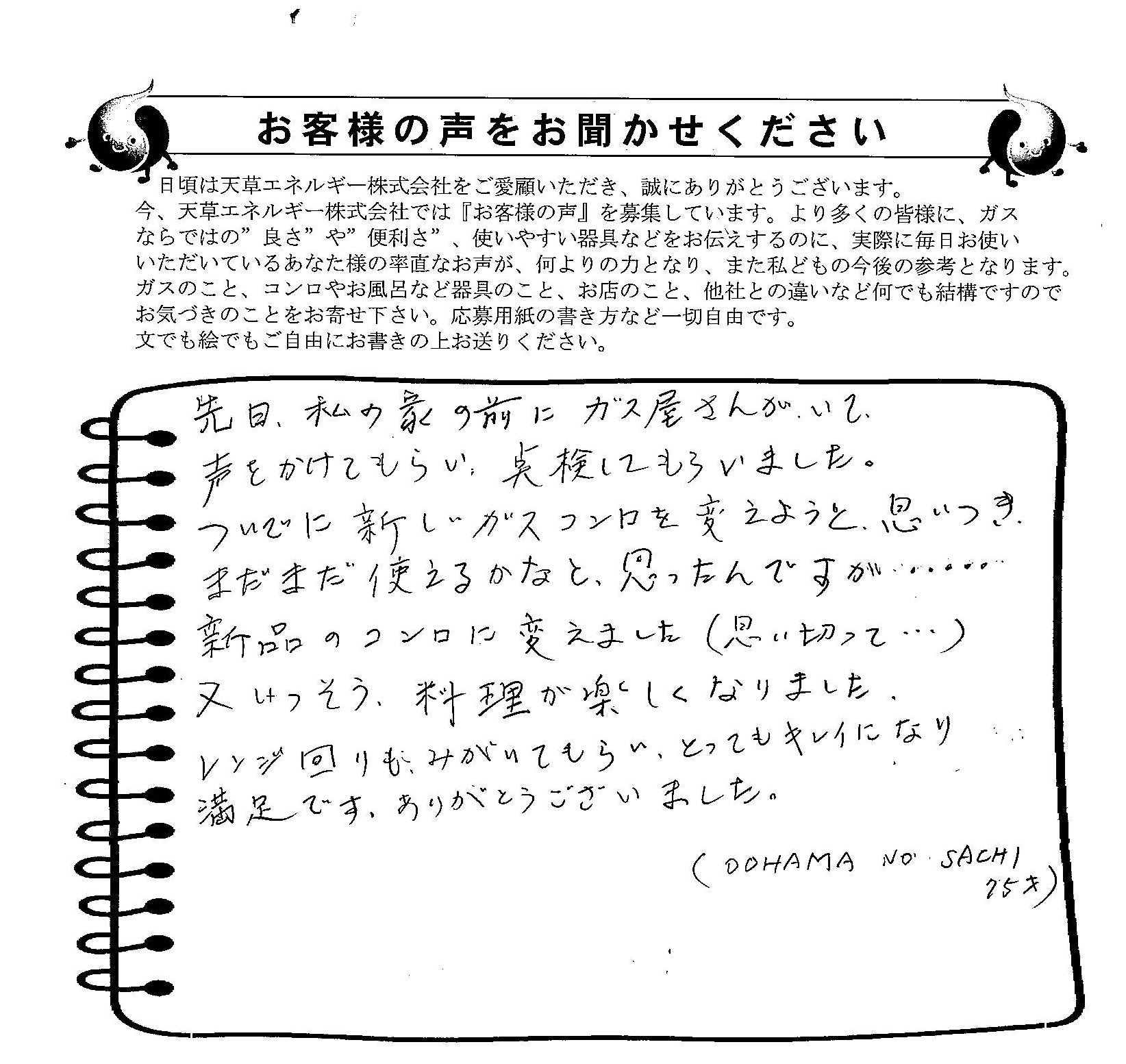 天草エネルギーのサービスをご利用のお客様から頂いた感想のお言葉を、ごく一部ですが掲載させて頂きました。