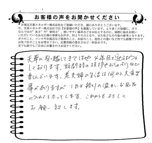 これからもいろいろ相談してもらい天草エネルギーを愛用したいです。