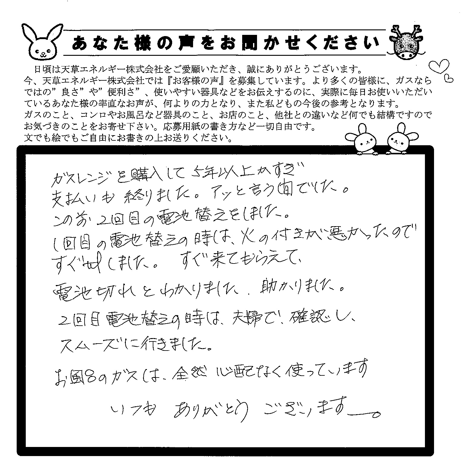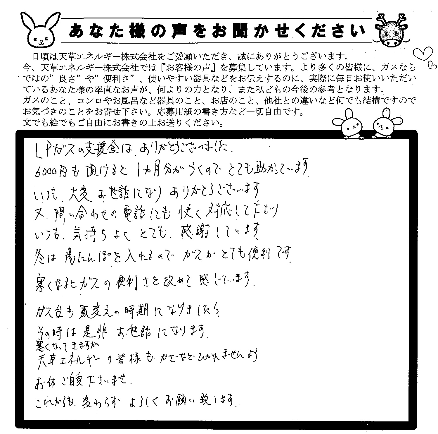 天草エネルギーのサービスをご利用のお客様から頂いた感想のお言葉を、ごく一部ですが掲載させて頂きました。